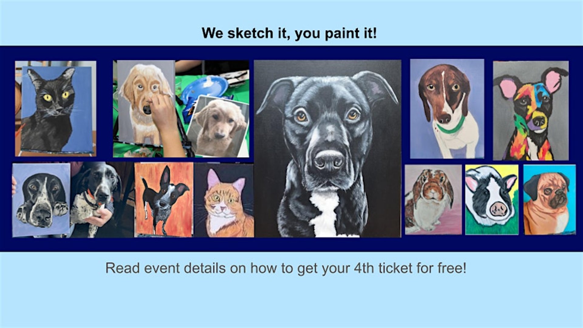 Our event is open to all ages (even kids) and all skillsets (no experience needed!) Also all pets can be painted (dogs, cats, horses, reptiles, etc).