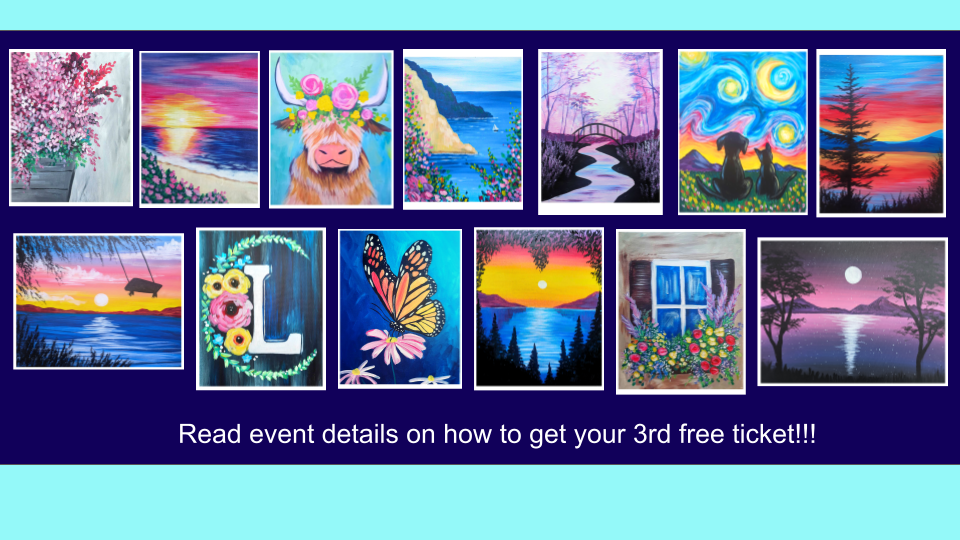I cant send you a free ticket so make sure you only buy 2 tickets! Your 3rd painter will inform me which theme they want to paint upon arrival!